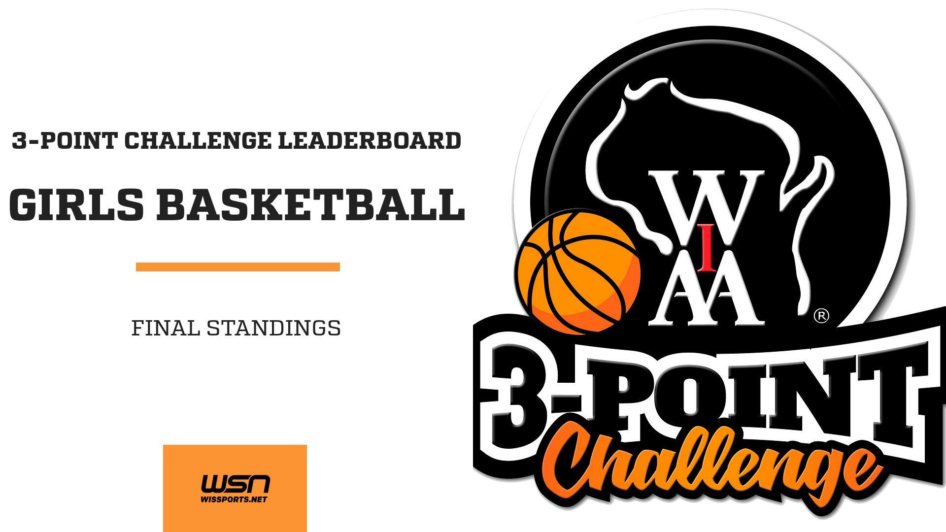 The Wisconsin Interscholastic Athletic Association will again be sponsoring a 3-Point Challenge as part of the Girls Basketball State Tournament. Contestants selected to participate in the Challenge will be chosen based on three-point shooting numbers in the WisSports.net stats database. Coaches must enter the player information on WisSports.net in order for the players to be eligible. The top two players at the end of the regular season in each division based on shooting percentage (min. 100 attempts; not participating in state tournament) will be selected to participate.